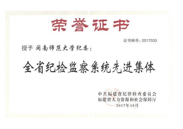 我校纪委荣获“福建省纪检监察系统先进集体”荣誉称号