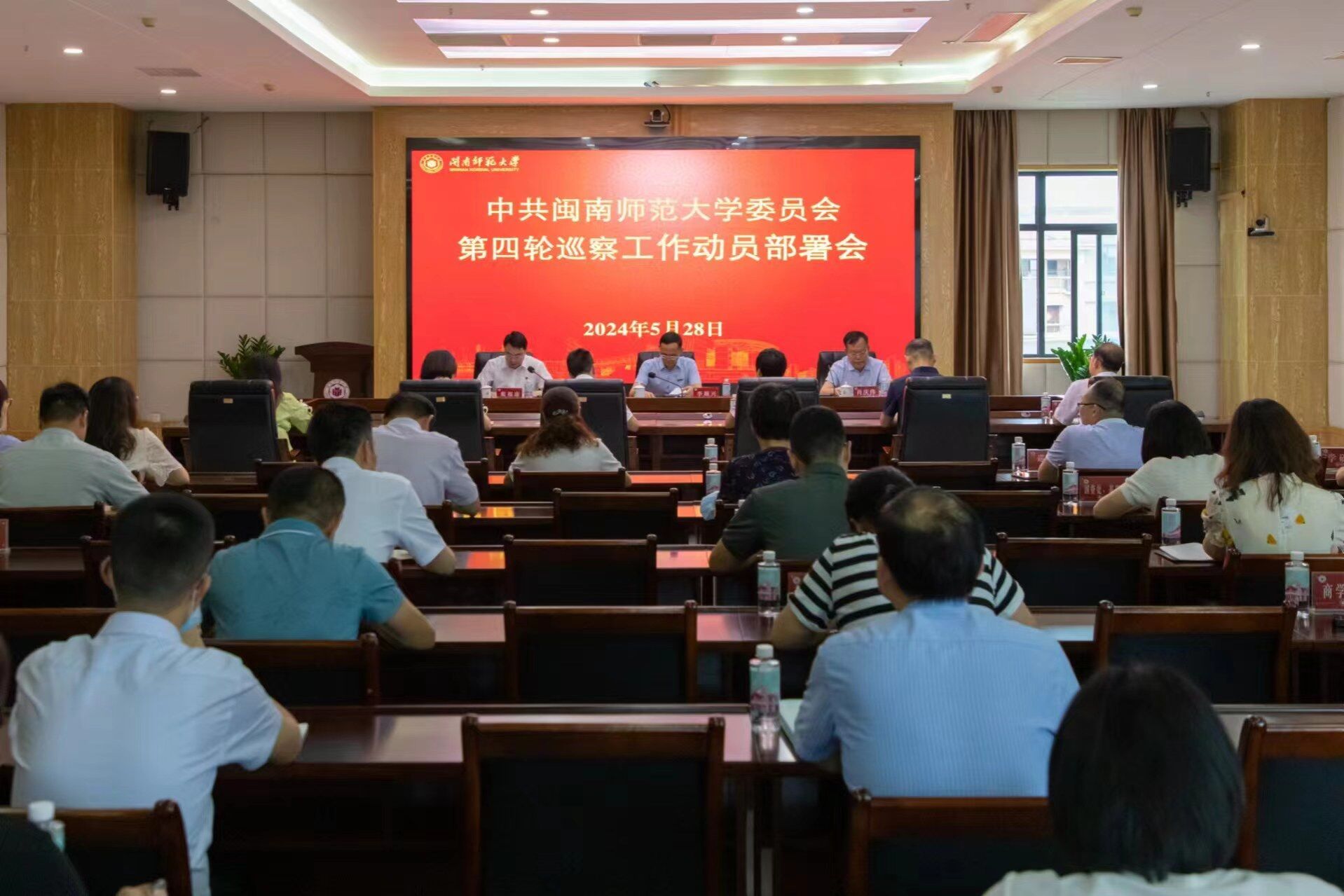 5月28日,校党委召开第四轮巡察工作动员部署会。校党委书记、校长、巡察工作领导小组组长李顺兴出席并作动员讲话,校党委副书记、巡察工作领导小组副组长肖庆伟宣布第四轮巡察工作组长授权任职和任务分工的决定,校纪委书记(监察专员)、巡察工作领导小组副组长戴福康传达学习2024年全国、全省巡视巡察工作会议精神并进行巡察工作部署。